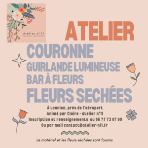 Participez à un atelier pour découvrir les techniques et nouveauté cette année : vous avez le choix entre les couronnes de fleurs, les guirlandes lumineuses et le bar à fleurs !